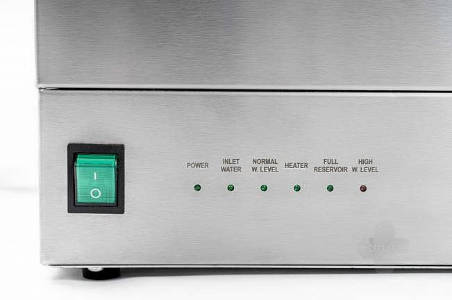 - Автоматическая система управления - отключение подачи воды и электричества при заполнении накопителя дистиллятом и, соответственно, автоматический выход на рабочий режим при отборе дистиллята из накопителя